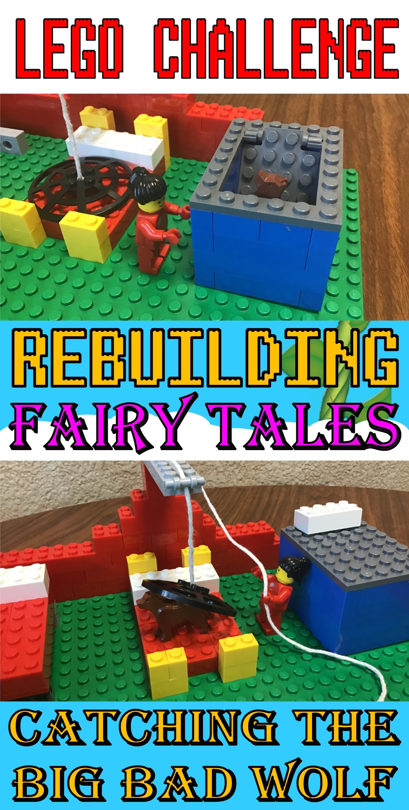 Our summer reading has kicked off at our library, and like many others, we’ve chosen the CSLP theme of “Imagine Your Story,” which celebrates fairy tales and fantasy books.  So this whole month, I’ve been using fairy tales for an inspiration to Lego Club.  Each build is broken into two parts.  For the first part, we rebuild part of a classic story.  Then for the second part, we use STEM and engineering to rethink a problem within the story.  This isn’t really a new idea, since I’ve seen plenty of “Three Little Pig” STEM ideas out there.  But hopefully, these ideas and challenges will add to it!