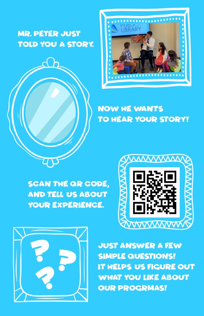 Also talk about it at the beginning or end of your story time sets. For me, I always explain that people come up to me with compliments after story time, but I’m too busy and I forget to write them down, so this really helps me out. Maybe have an iPad handy for those that want to fill it out but don’t have their phone with them or don’t understand QR codes.
