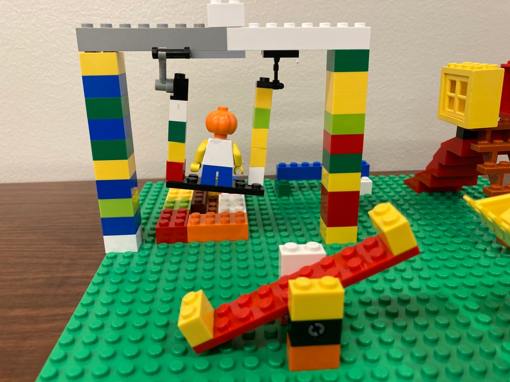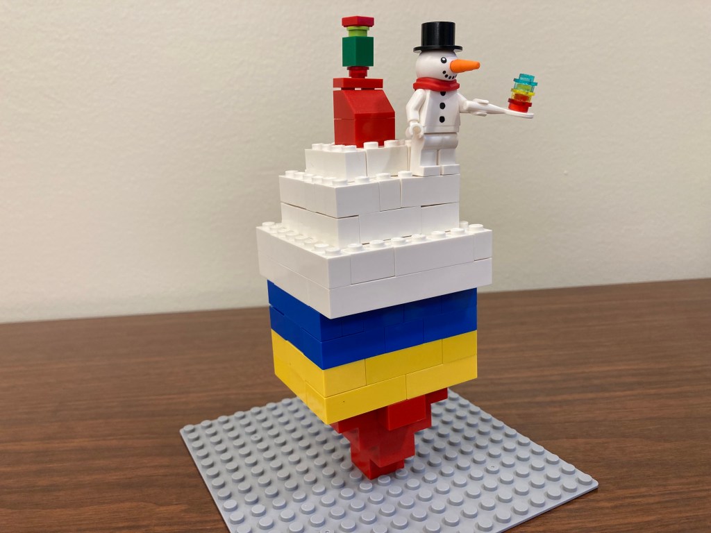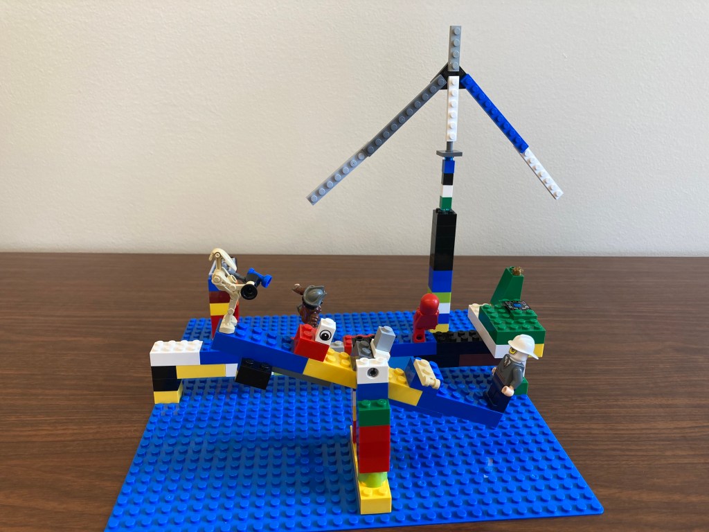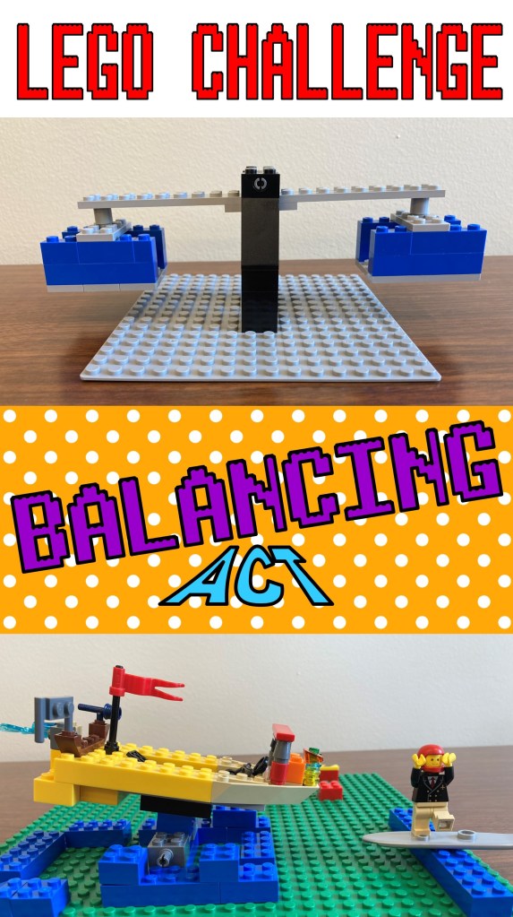 So after rules, I told them that the theme was going to be about balancing. I feel I got this idea from our “Mirror World/Symmetry” build we did a few weeks ago. So it was mainly a free build and they could build anything they wanted. BUT there had to be some sort of balancing element to it. So some examples would be scales, a balance beam, a tight rope, a seesaw. Also mentioned you could build a whole building, like an inverted pyramid, and have that balance on just one point. I had a kiddo take that in an interesting direction with this ice cream cone: