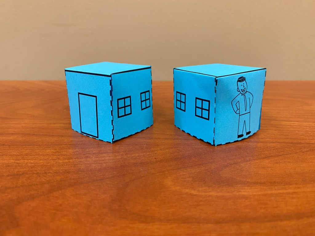 I’m attaching my print out, and you can get 3 houses per sheet. My wife, Abby Armour, came up with the idea of printing it on a blue paper, that way any water is going to be easier to see on it. The drawing of the guy is suppose the be me đŸ˜› Here’s my file: